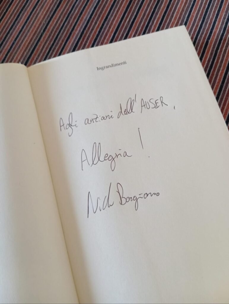 Nicolò ha voluto dedicare una copia del libro ai nostri anziani con una splendida dedica: